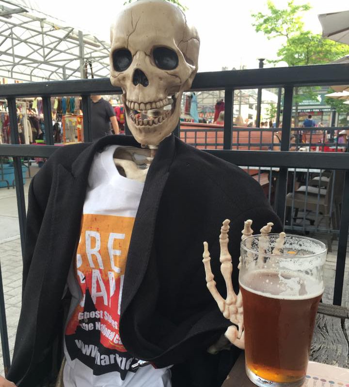 I’m pretty sure the sight of Barnaby sitting there with the big goofy grin on his face turned a lot of heads. And, on our walk back to the hotel later that night, we did get stopped by a number of people who were quite interested in what we were doing and wanted to get a picture taken with my bony buddy.