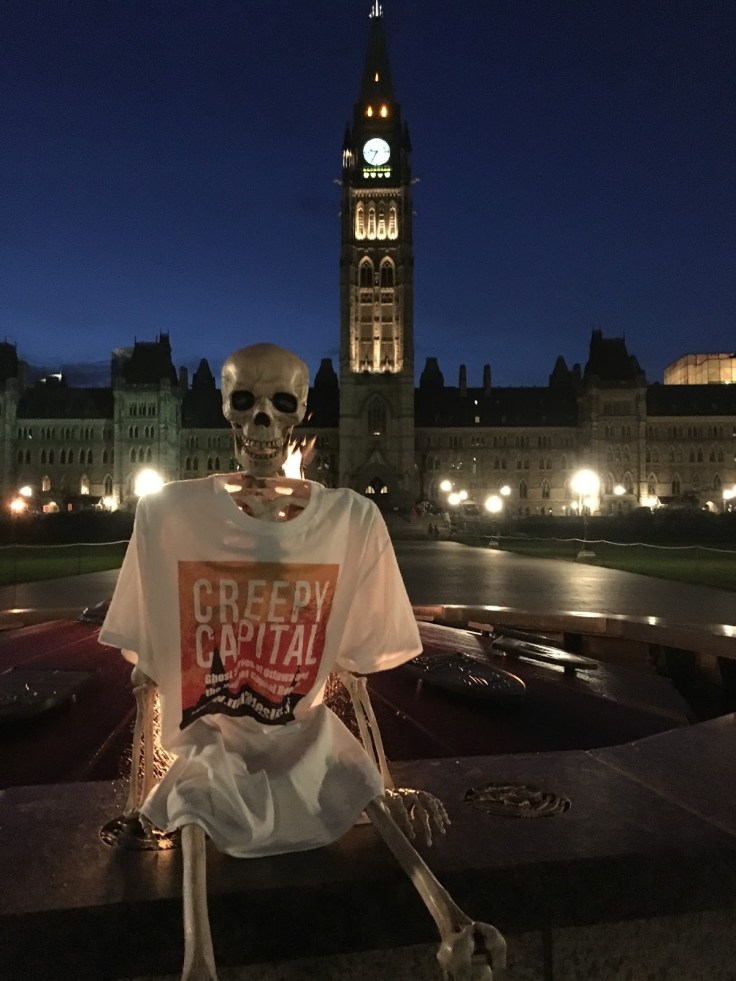 We also couldn’t resist getting a shot of Barnaby on Parliament Hill on our walk back to the hotel. (The RCMP folks did keep a close eye on us, but none of them stopped me or questioned what I was doing walking around with a skeleton)