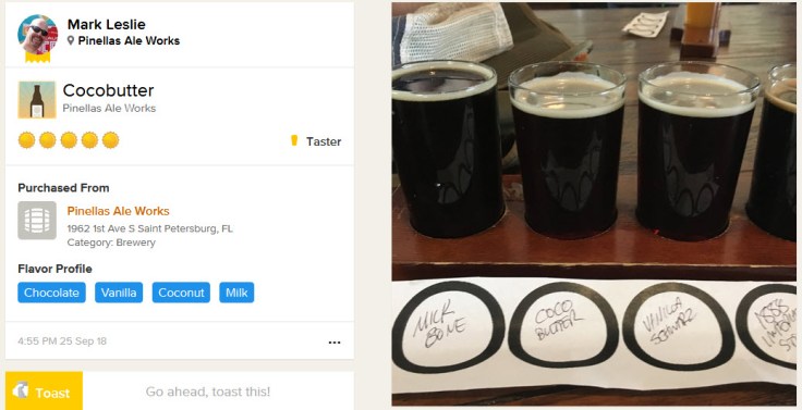 (It’s too bad you can’t edit your checkins on Untappd – I meant to type “heaven in a glass” but it came out “heaven on a glass”) – I was MOST disappointed, because when I brought some friends back to Cage Brewing a couple of days later, they had RUN OUT – after I had talked the beer up. Can’t wait to see if they have it when I return to St Pete this coming fall)